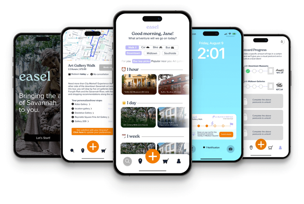 Easel is a free-to-download mobile app that efficiently yet authentically immerses Savannah tourists in the local art scene.